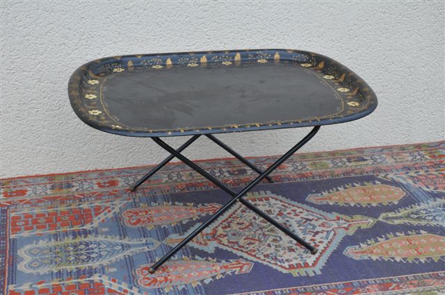 PLATEAU en tôle noire peinte, à décor floral. Napoléon III.