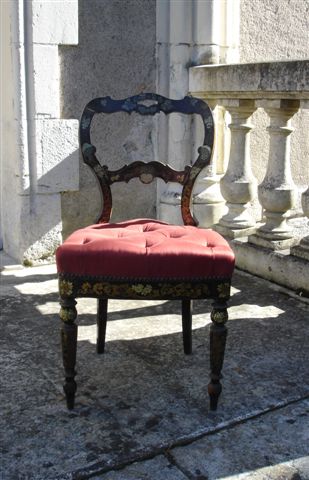 Suite de trois CHAISES en bois noirci, peint or. Prise de main sur le dossier.