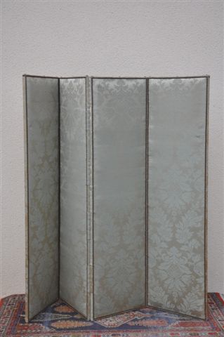 PARAVENT à quatre feuilles en damas bleu. Dans le goût du XVIIIème.