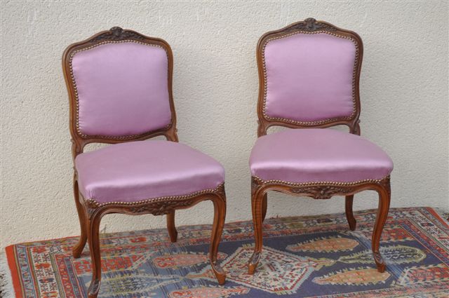 Paire de CHAISES à dossiers droits en bois naturel mouluré et sculpté. Style Louis XV.