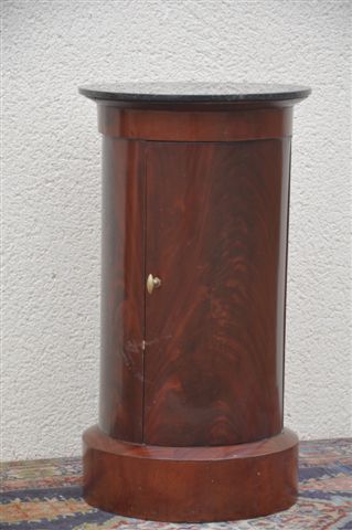 SOMNO en acajou et placage d'acajou, sur plinthe à doucine, dessus circulaire en granité belge à gorge.
