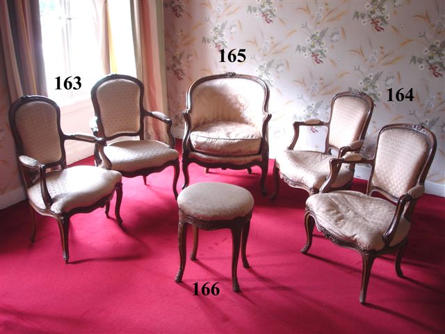 TABOURET de salon en bois naturel mouluré et sculpté, à décor de fleurettes, frises d'oves et feuilles d'acanthes stylisées. Il repose quatre pieds nervurés, légèrement galbés.
