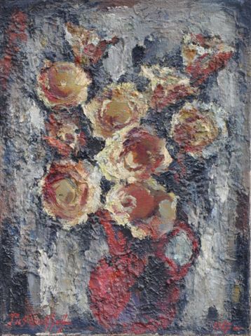 Boris PASTOUKHOFF Vase de pivoines.Huile sur toile signée en bas...