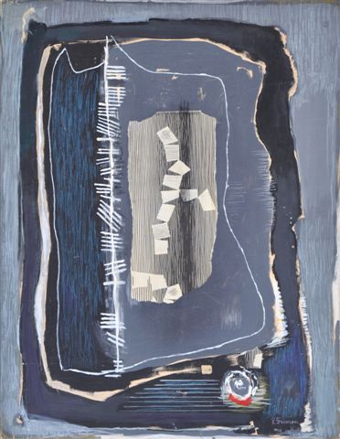 Technique mixte et collage sur carton, signée en bas à droite et au dos. 1968.