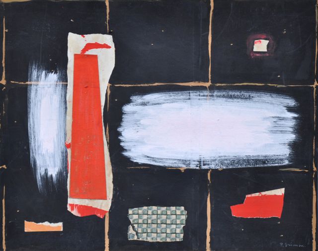 Gouache et collage sur carton, signée en bas à droite. Porte la date de 1969 au dos.