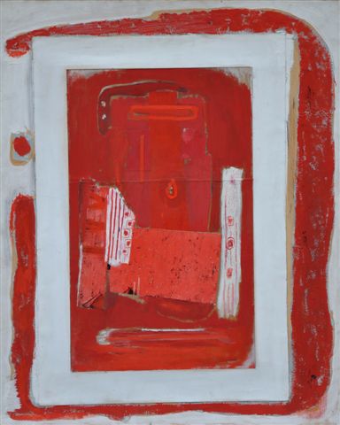 Technique mixte et collage sur carton, formant cadre, signée en bas à droite. 1964, mention "Acheté par Madame Grimm 1.9.1980".
