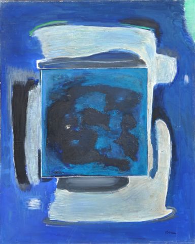 Pierre GRIMMComposition.Huile sur toile signée et datée au dos 12.04.71. 161,5 x 130 cm.