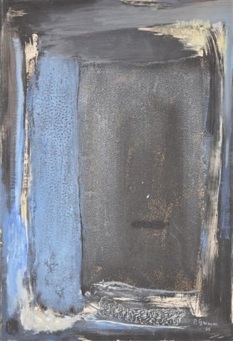 Huile et collage de papier de verre sur carton, signée et datée 66.