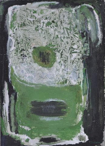 Gouache sur papier argenté, marouflée sur carton, signée à deux reprises.