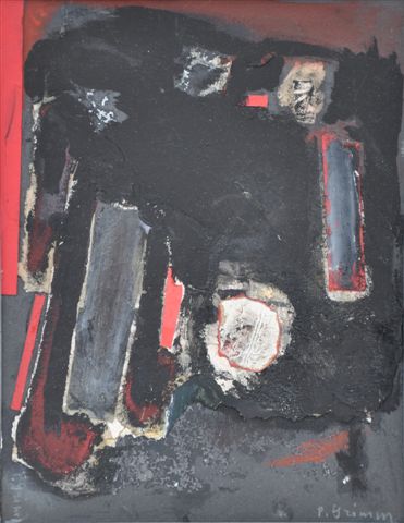 Gouache et collage sur carton, signée à deux reprises en bas.