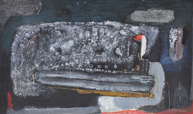 Pierre GRIMMCompositionGouache et collage sur carton, signée en bas à droite.36,5 x 59 cm.