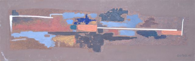 Huile et collage sur isorel signée et datée 67 en bas à droite.