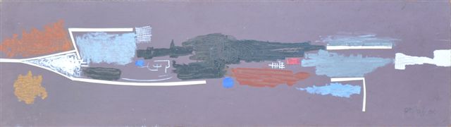 Huile et collage sur isorel signée et datée 67en bas à droite.
