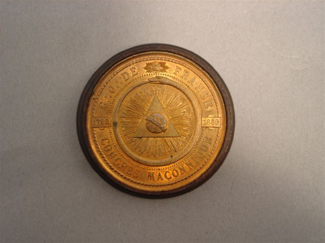 28 x 34 cm. Joint une médaille commémorative en bronze doré du GRAND ORIENT DE FRANCE célébrant le centenaire de la Révolution française. Datée 1889. Diam. 5 cm. Dans une boîte (couvercle accidenté).