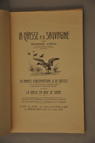 COCU. La chasse à la sauvagine. 13 années d'observations et de chasses à la hutte de l'Estacade près St-Valéry-sur-Somme. Chez l'Auteur, 1931.