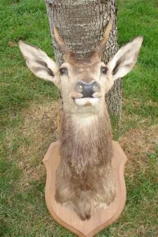 Tête de DAGUET naturalisée, fixée sur un écusson en bois.