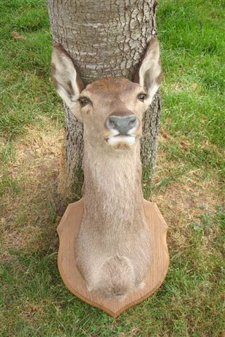 Tête de BICHE naturalisée, fixée sur un écusson en bois.