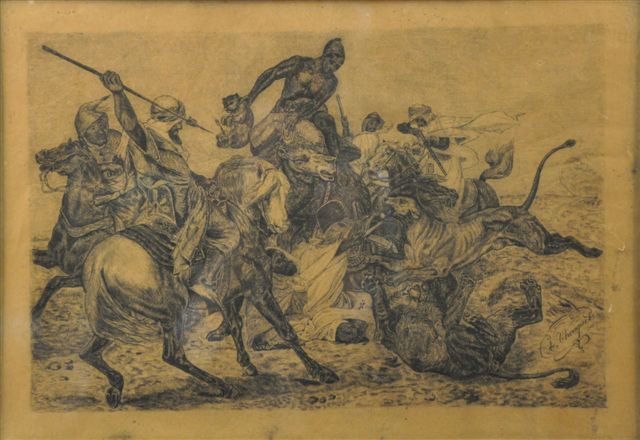 CHOUQUET A. Cavaliers arabes. chassant le lion. La prise du lionceau.