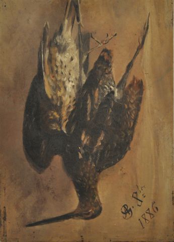 GENDRONNEAU. nature morte au limicole et à la grive.