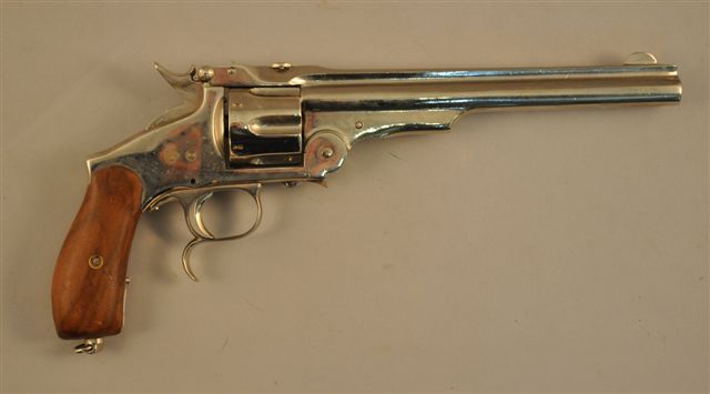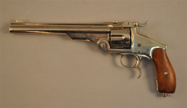 REVOLVER Smith & Wesson n°3 simple action, six coups, calibre .44. Plaquettes de crosse en noyer. Dans l'état, sans marquage