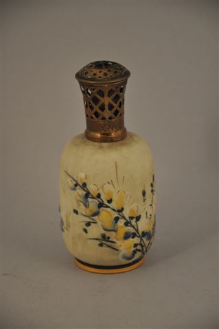 LIMOGES. THARAUD. LAMPE BERGER à décor de genëts (?). Emaux de grand feux.