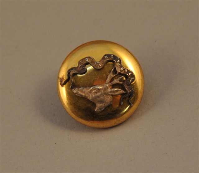 BOUTON DE LIVRÉE en laiton doré représentant un cerf avec inscription "soutien Vendée". Au culot "France, perfectionné EM". Diam. 1,5 cm.
