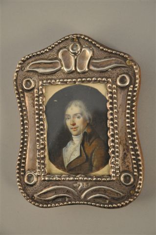 MINIATURE ovale sur ivoire représentant un portrait d'homme en redingote.