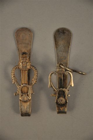 LOT de DEUX ÉLÉMENTS de CHAÎNE GILETIÈRE en argent à motifs d'une lyre. L'un poinçon Vieillard (1819-1838). XIXème. Poids: 32 g.