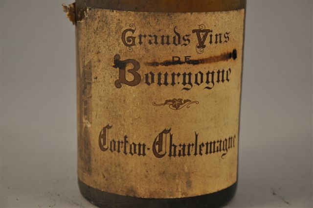 LOT de 14 bouteilles comprenant: BEAUNE, vieux: 2 bouteilles (1 niveau très bas, l'autre vidange). CLOS DE LA MOUTONNE, Gevrey Chambertin, Maison Thomas-Bassot, 1923 (millésime présumé pour une): 3 bouteilles, (2 vidange et une niveau bas). POMMARD, Grand Clos des Epenots, Domaine de Bernard de Courcel, 1942 en colerette (millésime présumé pour 2): 5 bouteilles (vidange). CORTON CHARLEMAGNE, 1934 en colerette (dont 2 présumé): 4 bouteilles (1 niveau correct et 3 vidanges)