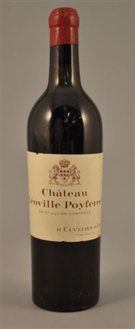 CHATEAU LÉOVILLE POYFERRÉ, Saint Julien, H. Cuvelier et Fils - Haubourdin. Présumées de 1947. 45 bouteilles. Avec paillons individuels, dans une caisse bois de l'époque.