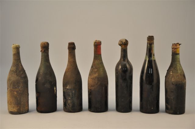 LOT de 7 bouteilles diverses, vieux. Sans étiquettes.