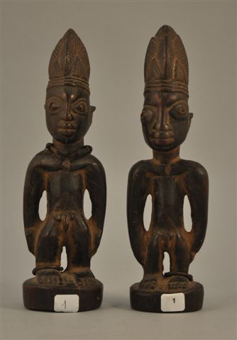 PAIRE DE JUMEAUX masculins Ibedji. Bois patiné.
