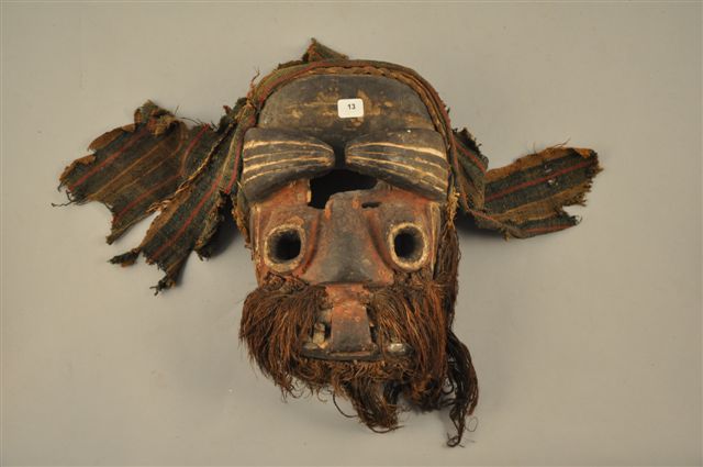 MASQUE "dhi gla". Bois peint de colorants végétaux, ornements de fibre et de tissu.