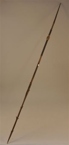 LANCE en bois à pointe et bagues de fer.Congo.