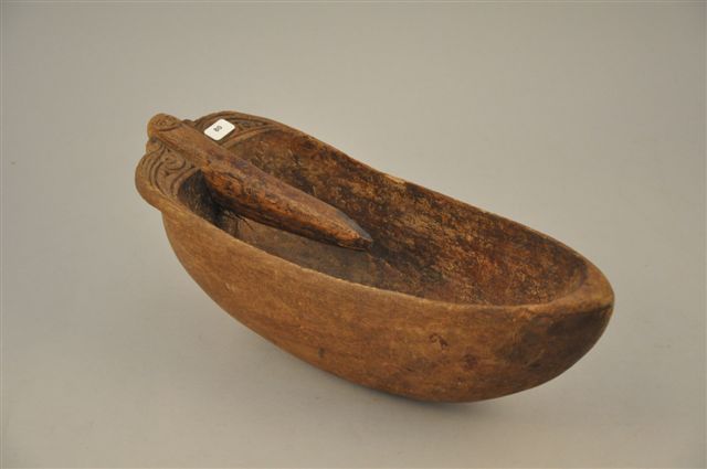 ECOPE. Bois sculpté d'une tête humaine et gravé d'un motif décoratif.