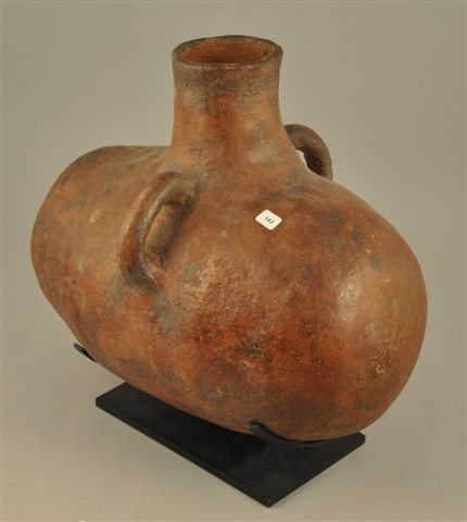 IMPORTANT VASE en forme de gourde à anses latérales. Terre cuite à engobe rouge.