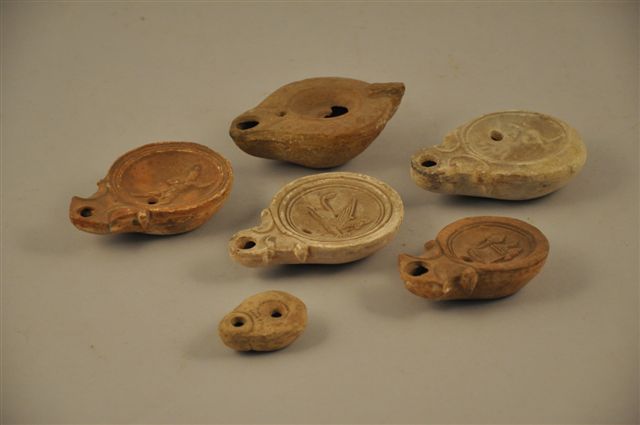 SIX LAMPES À HUILE en terre cuite.