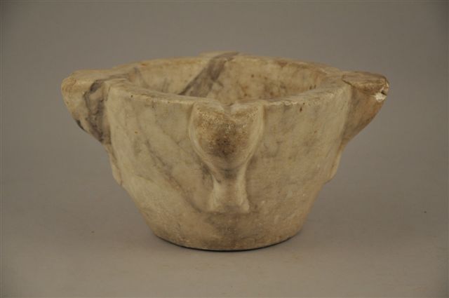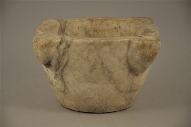 MORTIER de pharmacien à quatre ailettes. Marbre.