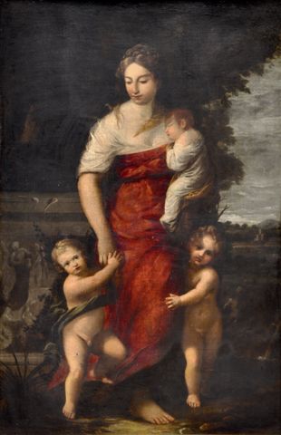 École EUROPÉENNE ancienne.La Charité.Toile.220 x 145 cm.Provenance : château du...