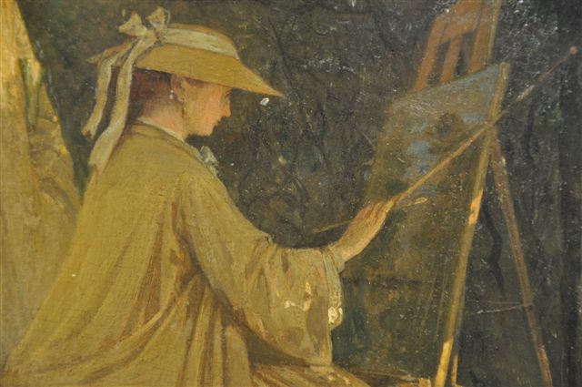 Les jeunes femmes représentées sont issues d'un milieu aisé ; la représentation de femmes-peintres est rare. Ce tableau ilustre la découverte de la peinture de plein air, sur le motif, à l'instar des deux soeurs Edma et Berthe Morisot, qui prennent en 1860, des leçons avec Corot.