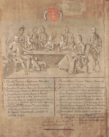 Portrait de la famille de Mollans dans leur salon de leur Hôtel de Besançon.