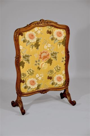 ÉCRAN de CHEMINÉE en bois naturel mouluré et sculpté de fleurettes et feuillage.
