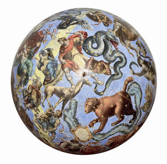 Coronelli a exécuté le modèle de ce globe céleste pour Louis XIV qui fit installer ce chef-d'oeuvre de plus de 13 mètres de circonférence à Marly où il suscita l'admiration de tous les visiteurs du Roi Soleil.