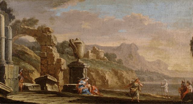 École ROMAINE du XVIIIème siècle, suiveur de Gian Paolo PANINI.Paysage...