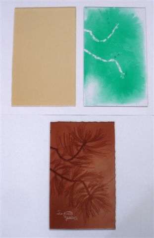 Chaque panneau est composé de 3 couches de verres superposées: le premier brun orangé fortement travaillé et gravé à l'acide, le second vert clair légèrement gravé à l'acide - et le troisième jaune opaque.