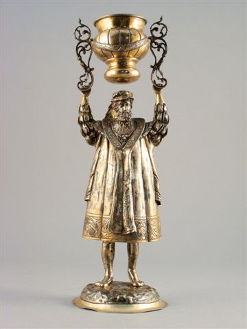 COUPE à boire de style Renaissance, composée d'un homme en habit amovible posant sur une base ronde, les bras supportant un gobelet.