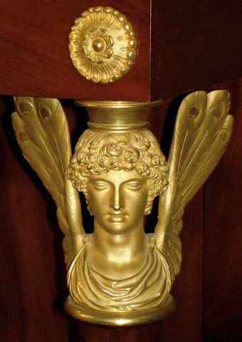 Ces consoles datent de cette époque. Caractéristique de l'influence gréco-égyptienne sous le Consulat, leur répertoire ornemental est similaire à celui d'une paire de consoles-jardinières en acajou, conservées au Musée national du château de Fontainebleau (inv. F 684 C), qui présentent elles aussi une structure en colonnettes et un décor de bustes ailés. Provenant de l'hôtel du général Moreau, rue d'Anjou, à Paris, où elles figuraient dans la chambre de l'épouse du général, elles sont installées en novembre 1804 au palais de Fontainebleau. À l'origine, ces consoles-jardinières comportaient un fond de glace qui a été remplacé dans la seconde moitié du XIXème siècle. Mais, à la différence de ces consoles, elles ne portent pas l'estampille des frères Jacob, même si tout laisse à penser qu'elles proviennent bien de leur atelier si l'on suit les développements de Denise Ledoux-Lebard (Les ébénistes du XIXème siècle, p. 295). Ces consoles pourraient donc conforter l'hypothèse que les consoles-jardinières de Fontainebleau proviennent bien de l'atelier des Jacob. Peut-être même, à l'origine, formaient-elles un ensemble cohérent qui se serait trouvé dispersé lors de la confiscation du mobilier du général Moreau par Bonaparte?