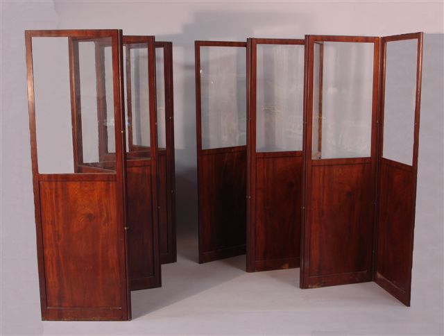 PAIRE de PARAVENTS en acajou et placage d'acajou, à six feuilles garnies de glaces dans la partie supérieure. (soulèvements et manques au placage).
