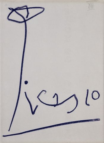 De la série des 19 signatures - de la vente Feld, Cheverny 15 mai 1995, n° 605 - toutes numérotées, certaines ayant servi de modèle pour la reliure des ouvrages: Notre Dame de Vie et le Peintre et son modèle.