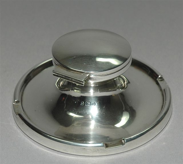 ENCRIER en ARGENT massif, de forme cylindrique tronquée avec fermeture à charnière pour un godet encrier.